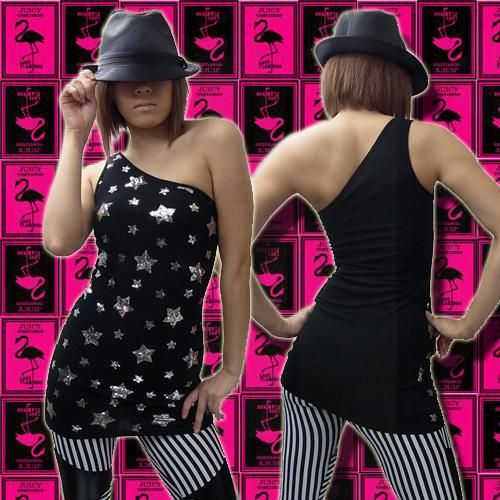 キラッキラ★スパンコールで出来た星柄♪ゴールドorシルバーどちらも目立つ事☆間違いなし!!ダンサーやアーティスト衣装にもおすすめ!ワンショルダーでSEXYスタイルにもばっちり♪ストレッチ有り。脇下サイズ約56cm。柔らかいカット素材。