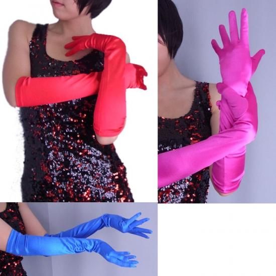 カラーの発色がとってもきれいなサテン生地を使用♪ 伸縮性もバッチリで使いやすい!ウエディングや華やかなパーティー♪ドレスの衣装アイテムからイベントやダンサー衣装としてのアイテムとしてもお使いになれます♪♪ストレッチ感有り、長さ約48cmでヒジまできます